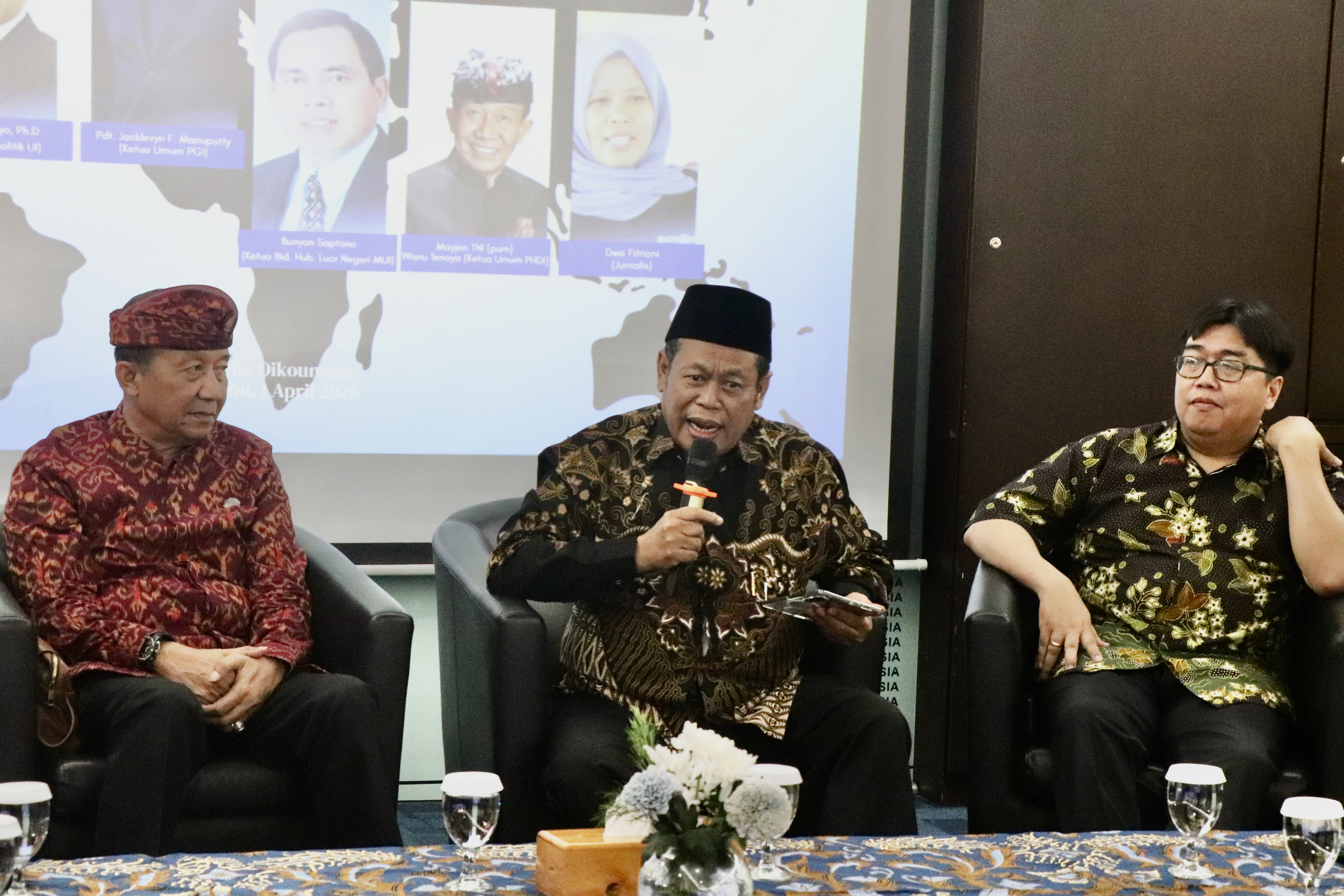 Acara yang dikemas secara santai namun sarat makna ini, menghadirkan narasumber Pdt. Jacklevyn Fritz Manuputty (Ketua Umum PGI), K.H. Dr. Marsudi Syuhud (Wakil Ketua MUI), Bunyan Saptomo (Ketua MUI Bid. Hub. Luar Negeri), Mayjen TNI (Purn.) Wisnu Bawa Tenaya (Ketua Umum PHDI), Broto Wardoyo, Ph.D (Dosen Geopolitik UI), dan Desi Fitriani (Jurnalis Spesialis Wilayah Konflik).