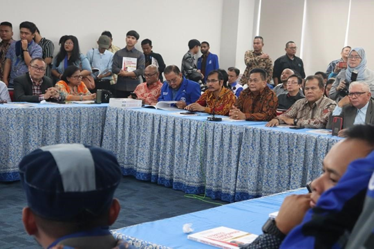 JAKARTA,PGI.OR.ID-Menteri Pertahanan (Menhan) RI yang juga capres no urut 2 Prabowo Subianto didampingi Ara Sirait, politikus PSI Grace Natalie, serta Gerindra Fahri Djemi Francis, mensambangi kantor PGI, untuk berdialog dengan MPH-PGI, pimpinan sinode gereja, PGIW, MPK, pengurus GMKI, dan GAMKI, di Grha Oikoumene, Jakarta, pada Jumat (19/1/2024).
