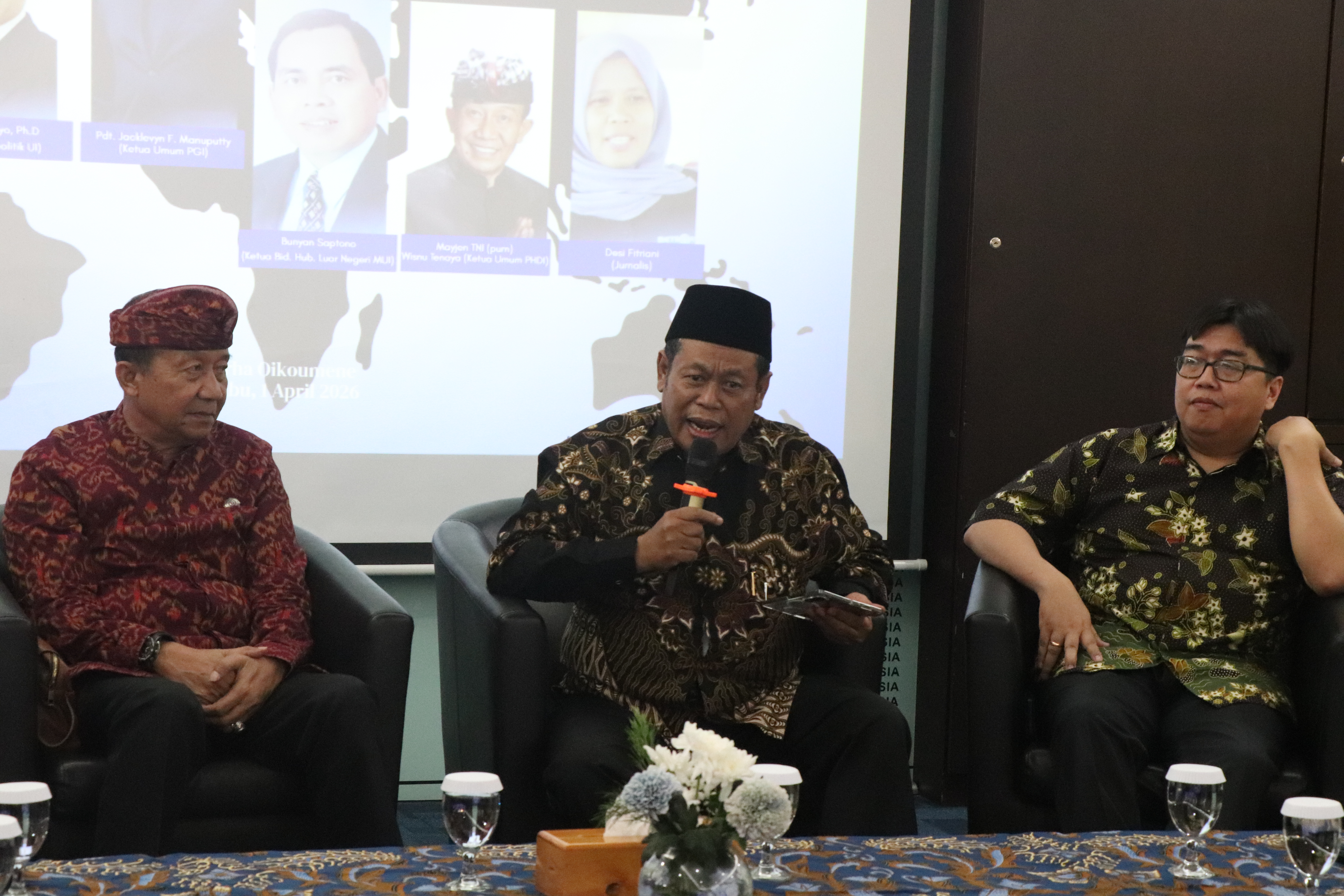 Acara yang dikemas secara santai namun sarat makna ini, menghadirkan narasumber Pdt. Jacklevyn Fritz Manuputty (Ketua Umum PGI), K.H. Dr. Marsudi Syuhud (Wakil Ketua MUI), Bunyan Saptomo (Ketua MUI Bid. Hub. Luar Negeri), Mayjen TNI (Purn.) Wisnu Bawa Tenaya (Ketua Umum PHDI), Broto Wardoyo, Ph.D (Dosen Geopolitik UI), dan Desi Fitriani (Jurnalis Spesialis Wilayah Konflik).