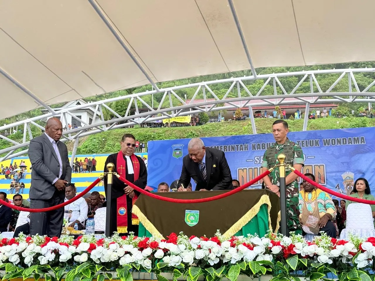 “Mari kita jaga tanah ini, surga yang turun ke bumi. Mari kita rawat warisan ini. Mari kita bangun Papua bukan karena ambisi, tetapi karena kasih kepada Kristus. Seperti kata Domine Izaak Samuel Kijne: bangsa ini hanya akan berubah jika bangkit dan membangun dirinya sendiri,” tandasnya.